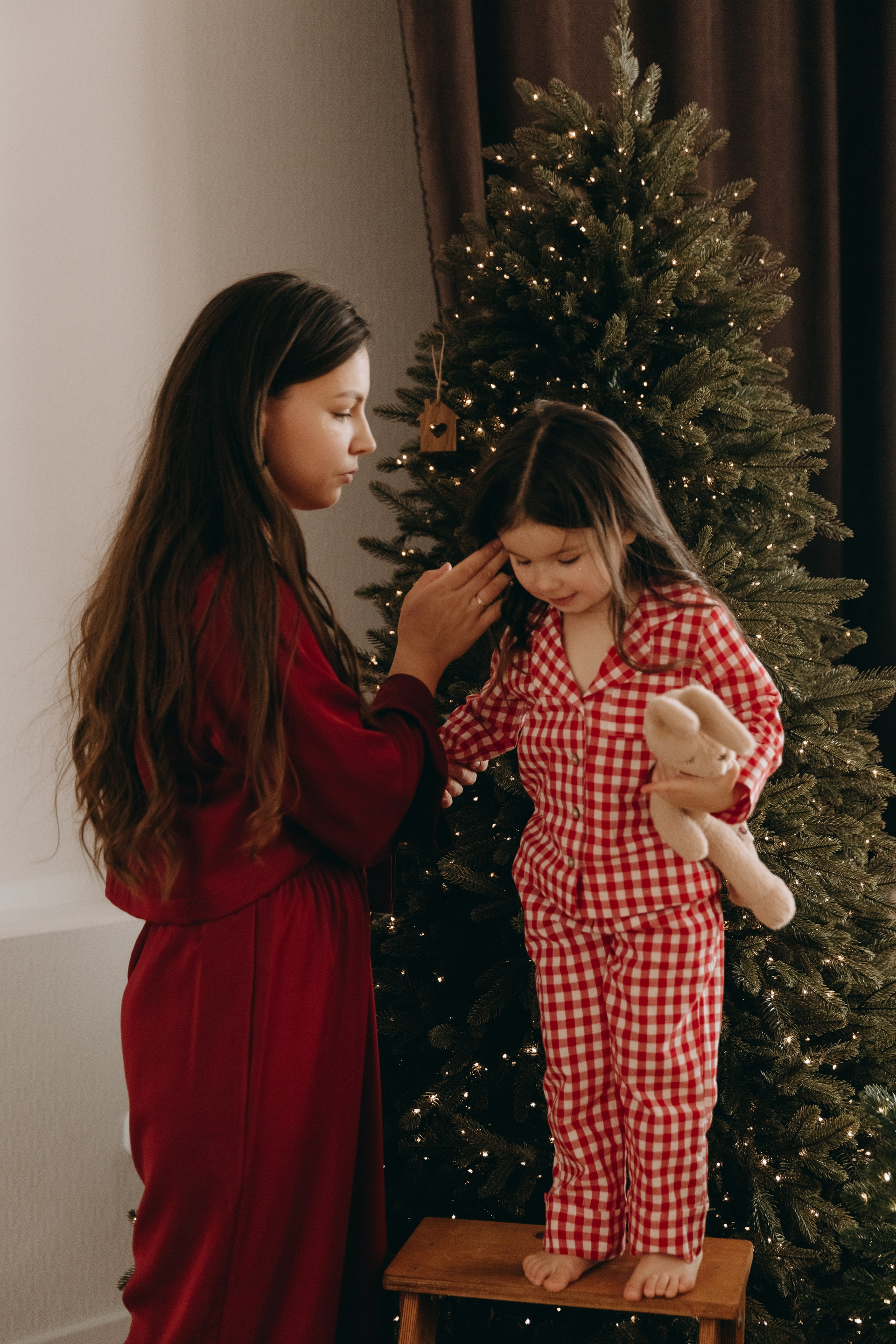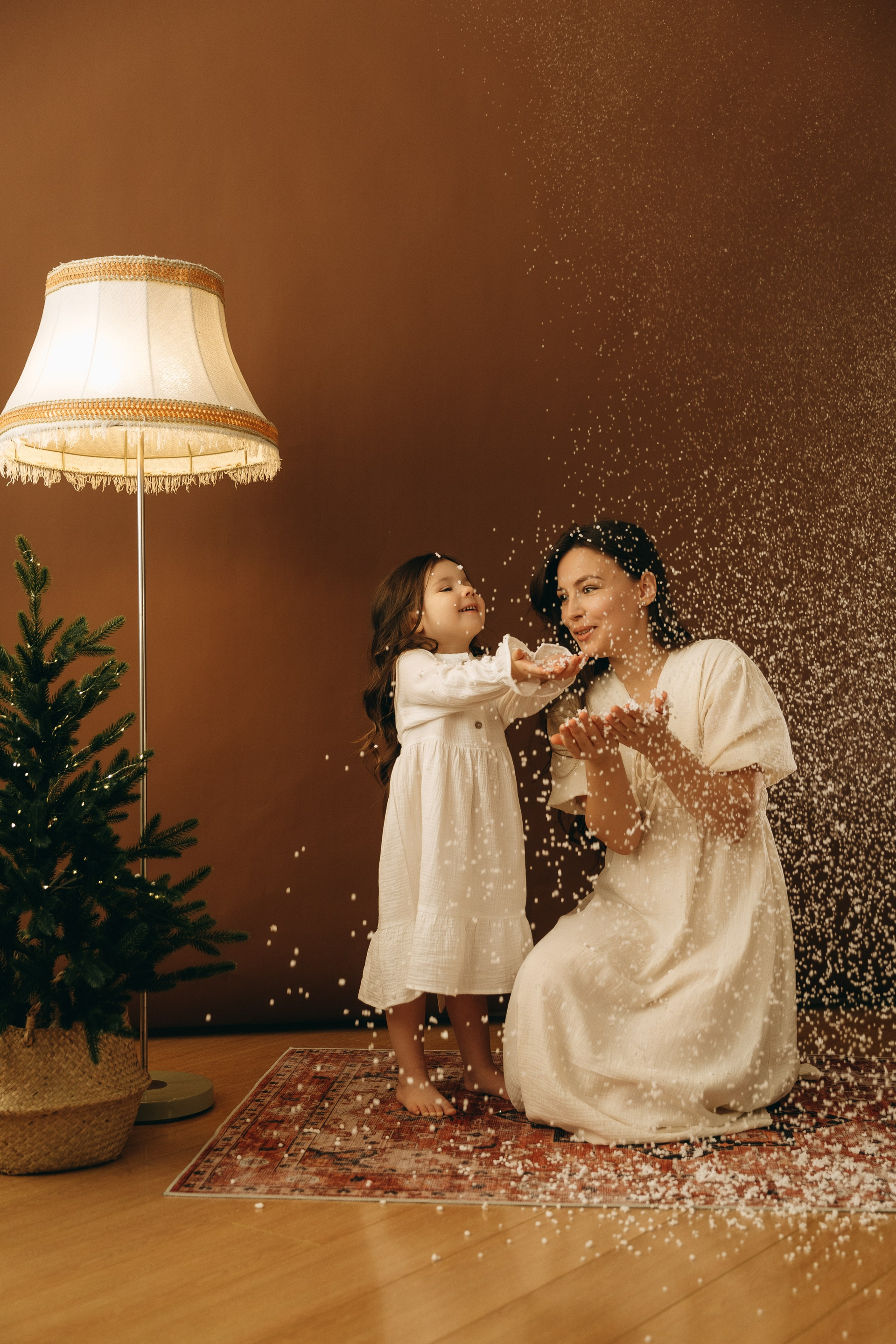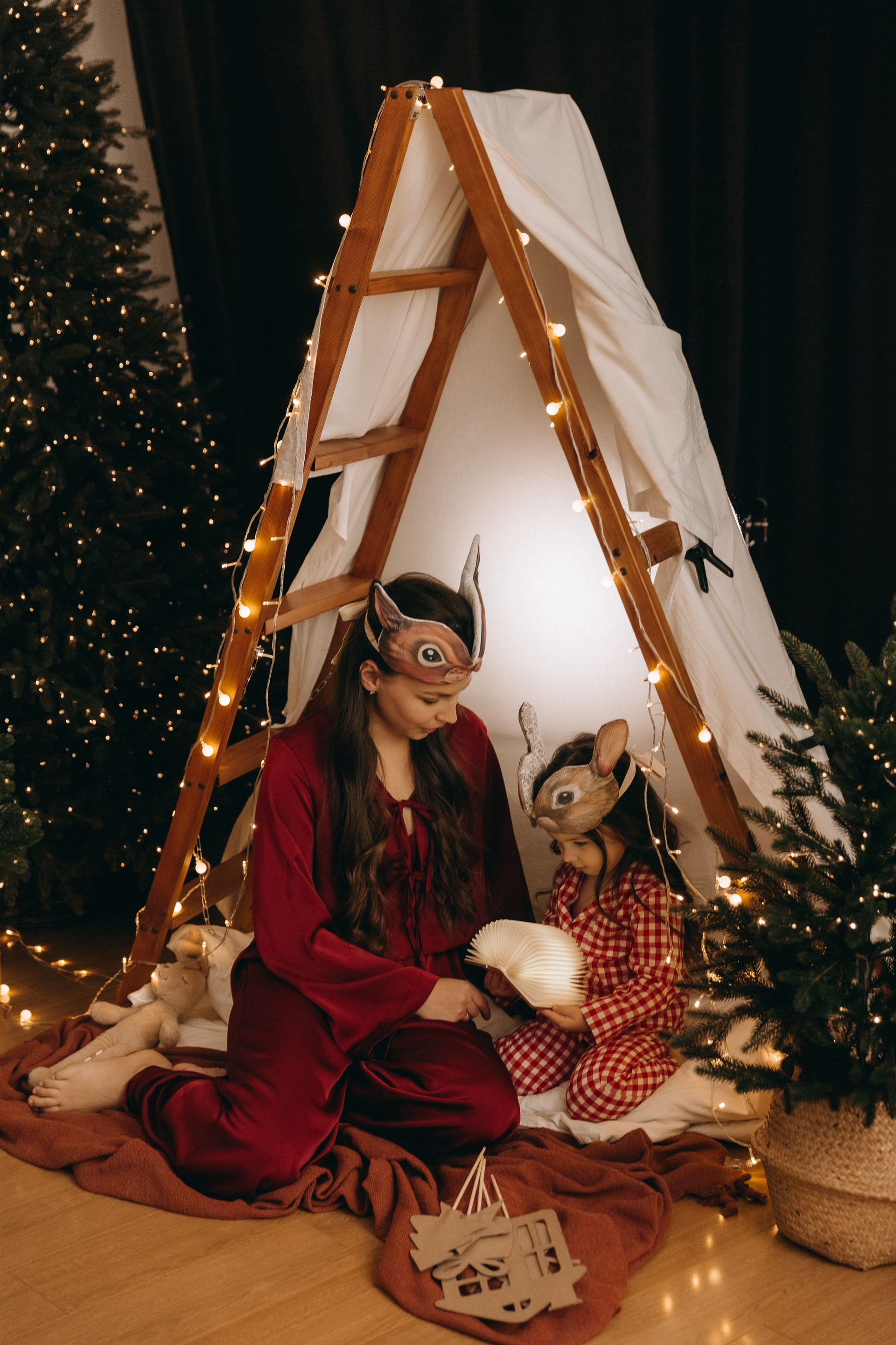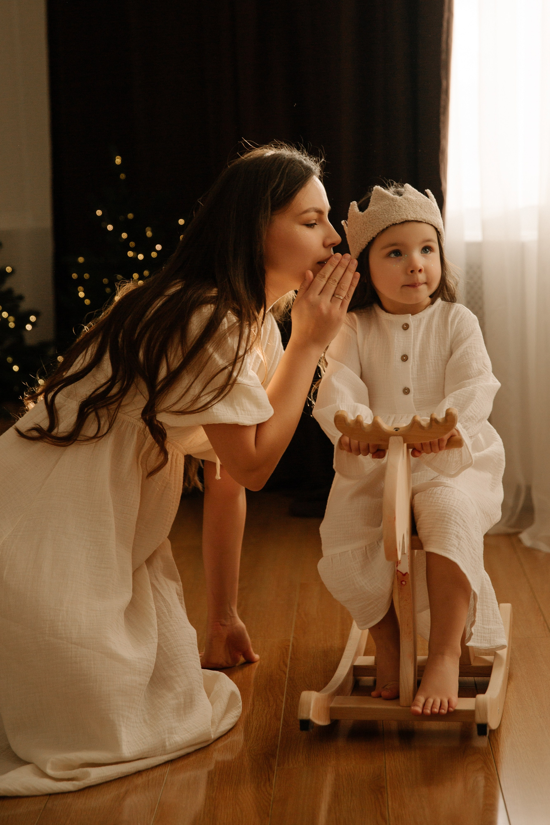 Юля — моя одноклассница. Как сейчас помню, заказала эти детские коричневые носки с AliExpress, узнала, что они приехали в гости, звоню ей и спрашиваю «Я приеду к тебе с фотоаппаратом и носками?». А у Лизы нашлась крутая шапка с ушками. И всё сошлось. И случились эти фотокарточки для семейного альбома.